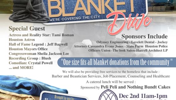 Join the City of Houston on December 2nd, 2017 at St. John’s Church Downtown – 2019 Crawford St. Houston, Texas from 11:00 am to 1:00 pm for the 4th Annual Hugs in a Blanket Drive with special guest: Tami Roman, Houston Astros, Sheila Jackson Lee, Blush, and more!