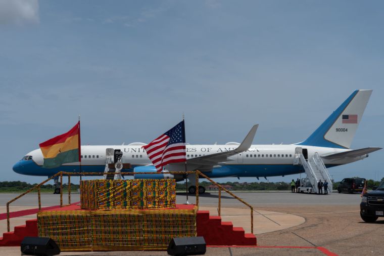 She and the second gentleman Dough Emhoff emerged from Air Force Two to the warmest of welcomes in the capital city of Accra, where officials literally rolled out the red carpet for the U.S. delegation as drummers performed alongside members of the Ghana Dance Ensemble.