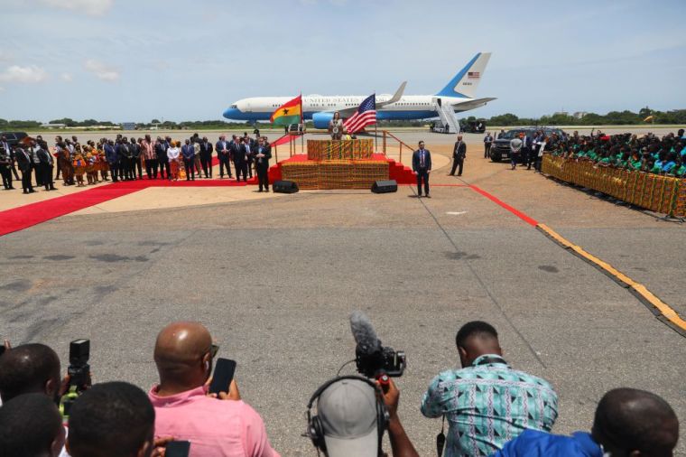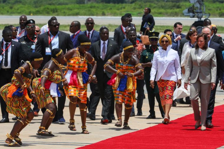 Harris was welcomed by Ghanaian Minister for Foreign Affairs and Regional Integration, Shirley Ayorkor Botchwey (fourth from right).
