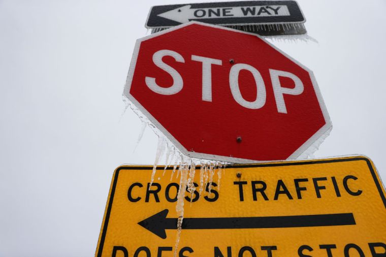 Icicles hang from street signs in Killeen, Texas, on Feb. 18.